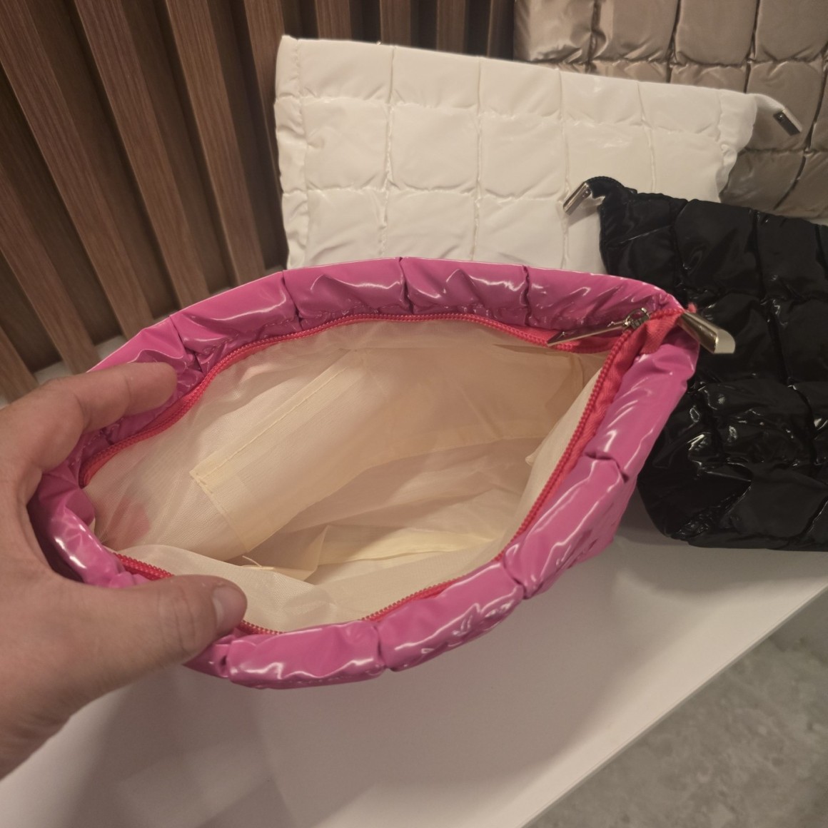 NECESSAIRE LUXUOSA ACOLCHOADAMedidas aproximadasComprimento: 26 cmLargura: 6 cmAltura: 16 cm*Cores fantasia